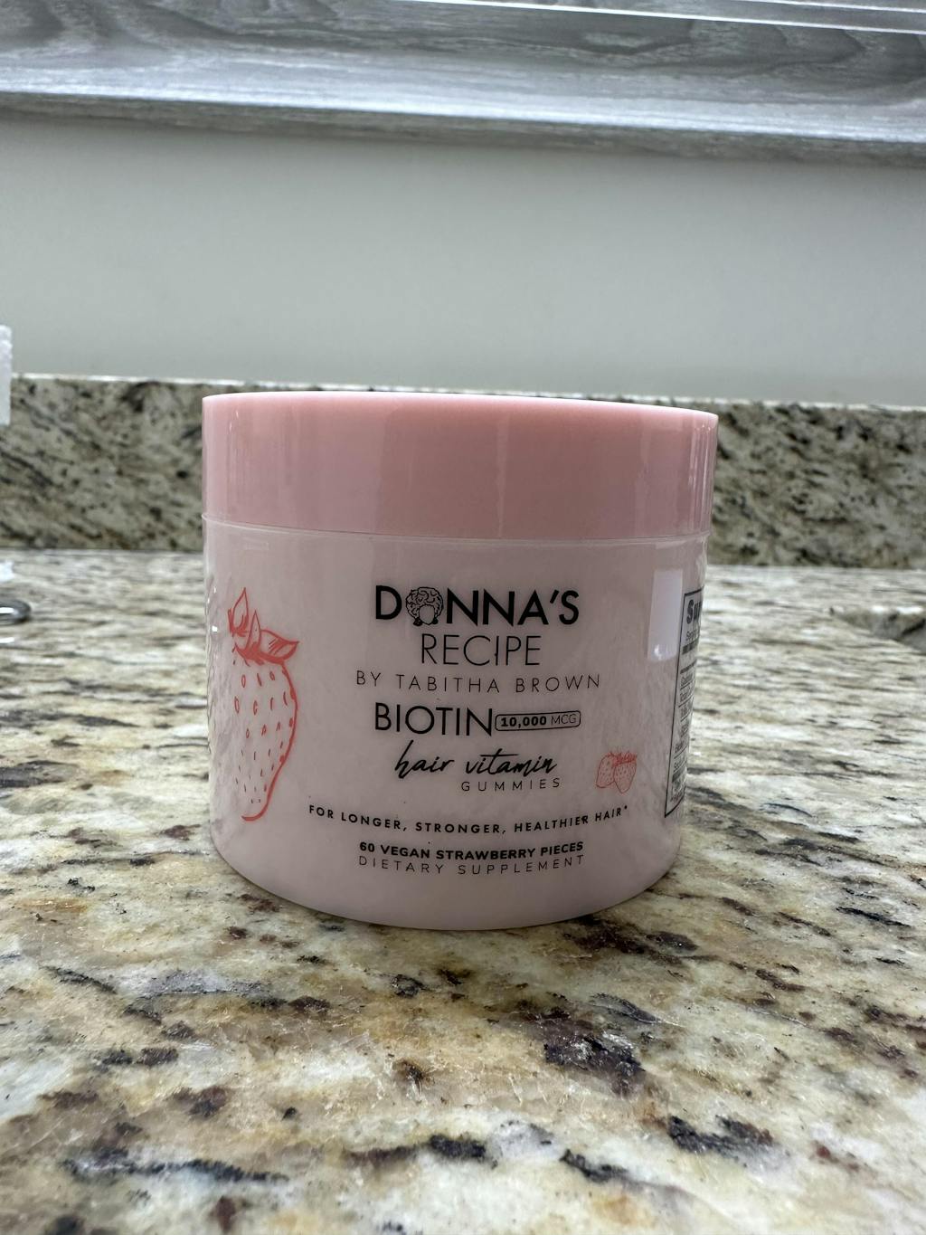 Introducing Donna's Recipe Vegan Strawberry Biotin Hair Vitamin Gummies, the perfect addition to your hair care routine. These delectable gummies are not only packed with 10,000mcg of Biotin per serving size (2 gummies), but they also offer a delightful taste that will make taking your daily hair vitamins a pleasure.